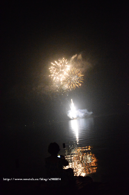 其實是站在湖邊欣賞煙火~~