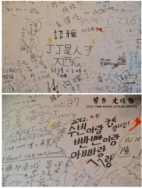 牆上有許多遊客的簽名、畫畫和對ㄤ咕麵的讚賞