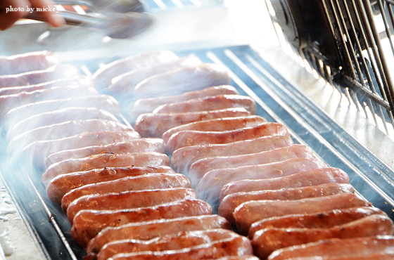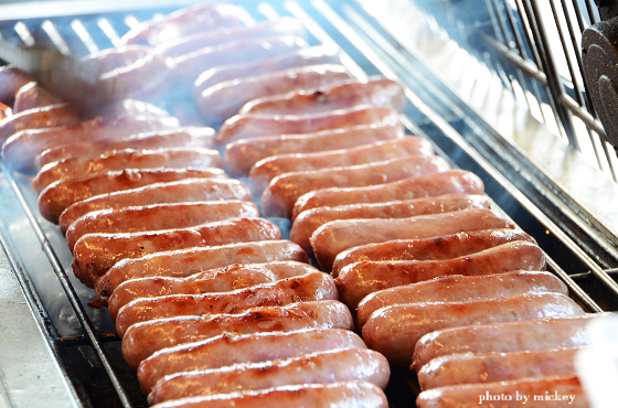 猜想是因為當香腸放在烤肉網上時~烤香腸的阿姨雖然一直忙著翻轉香腸